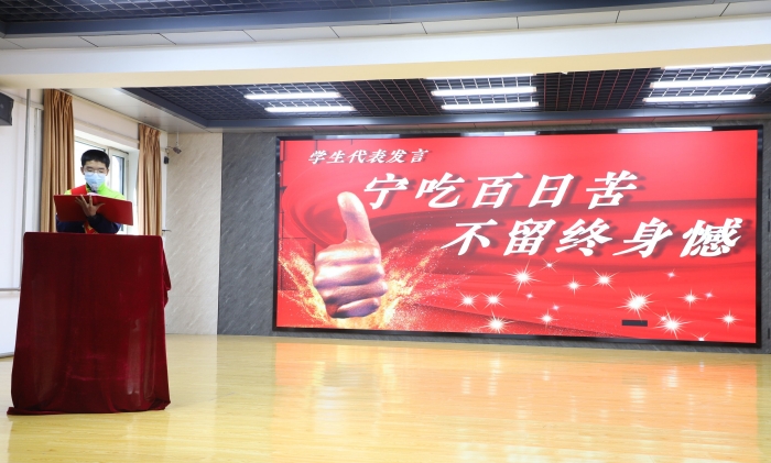 伴随着雄壮的国歌,市三中百日倒计时誓师大会拉开了帷幕。会上九年级全体教师发出寄语,定会坚守岗位,尽职尽责,奋力耕耘,再创佳绩。家长代表承诺,全力配合学校和老师尽心尽力的做好一切后勤工作,做好孩子们坚实的后盾。部分往届优秀毕业生为冲刺的学子们分享了学习经验也送来了祝福。学生代表带领全体学生振臂宣誓,表达了他们勇争一流的壮志豪情。