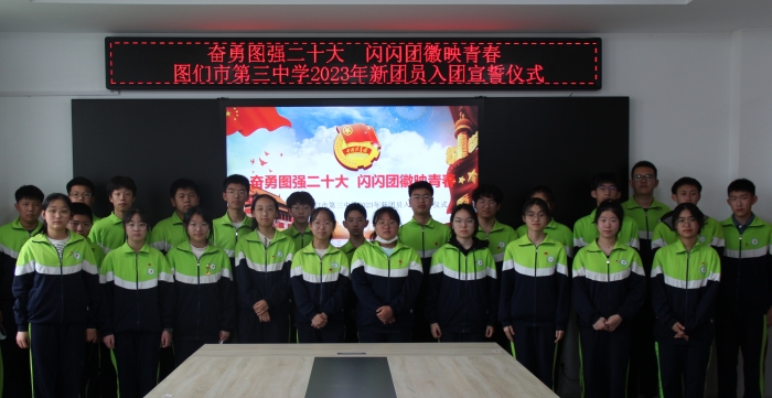 为深入学习贯彻党的二十大精神,加强共青团队伍建设,做好团员仪式教育,为团组织注入新鲜血液,提升新团员的归属感、自豪感、使命感,在“五四”青年节来临之际,图们市第三中学团委于2023年5月5日在三楼会议室举行新团员入团宣誓仪式。
