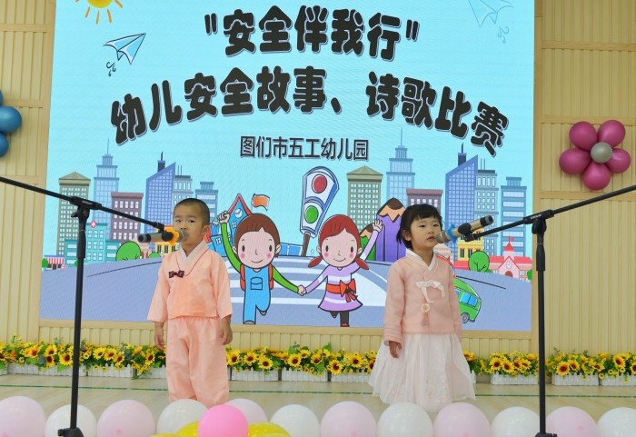 为进一步加强校园安全教育宣传,提高幼儿安全防范意识和自我保护能力,进一步推动提升幼儿园国家通用语言教育质量。图们市五工幼儿园以“防灾减灾宣传周”活动为契机,于5月10日上午开展了 “安全伴我行”幼儿故事、诗歌比赛。