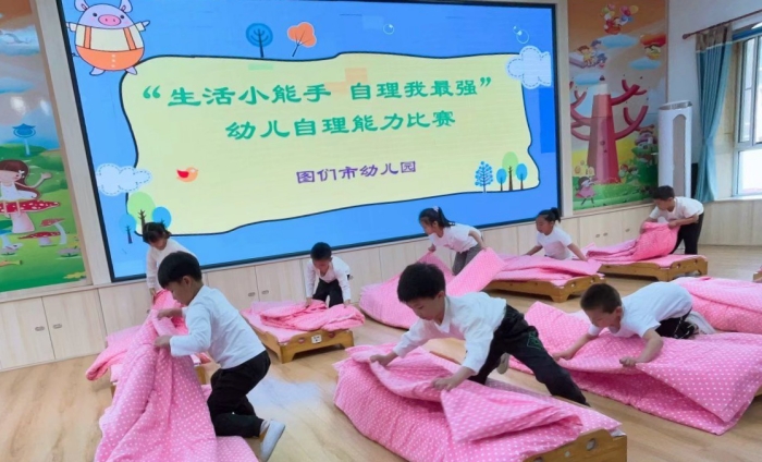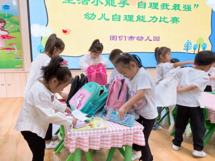 为全面贯彻《3-6岁儿童学习与发展指南》中关于幼儿生活习惯和能力的教育目标,培养幼儿的自我管理和服务意识,提高幼儿的生活自理能力,学会自己的事情自己做,从小养成良好的生活习惯。近日,图们市幼儿园组织开展了“生活小能手,自理我最强”,幼儿生活自理能力比赛。