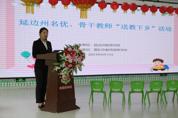 为推进图们市学前教育优质均衡发展,缩小城乡教育发展之间的差距,加强城乡教师的交流与沟通,帮扶图们市阳光幼儿园教师提升教育教学质量,充分发挥名师的辐射、示范、带动作用。6月15日,延边州教育学院在图们市阳光幼儿园开展了延边州名师、骨干帮扶团队“送教下乡”活动。延边州教育学院教务处领导、图们市教师进修学校领导莅临本次活动。
