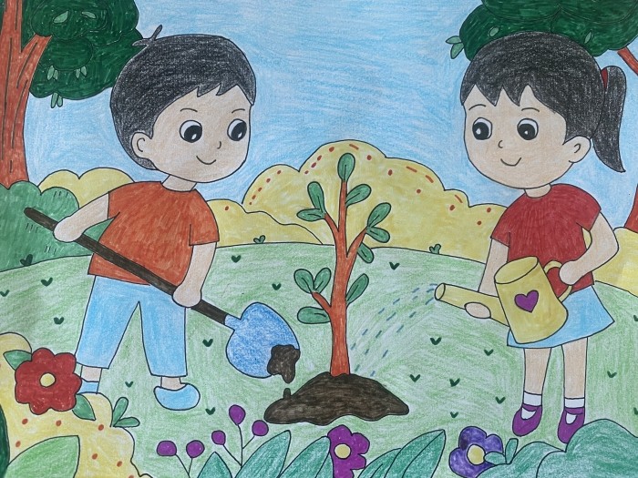 学校以班级为单位,以“关注森林 伴我成长”为主题开展班会,学生利用课余时间大量搜集“森林知识”方面的资料在班会上进行分享,宣传爱护大自然的环保理念,并发挥自己的特长制作了森林环保主题的手抄报、绘画。