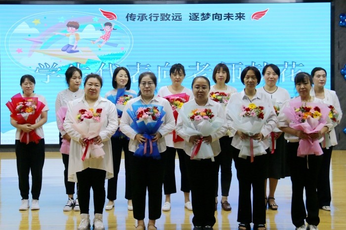 典礼在庄严的国歌中拉开了序幕;时光荏苒,岁月如梭,同窗相伴前行数载,六年的小学生活转瞬即逝,快乐与欢笑都已深深印在脑海中;学生将一束束象征着感恩的鲜花送给老师,对教师三鞠躬,表达着对老师的祝福和感谢;老师是园丁,育得桃李芬芳;学生是花朵,在阳光下茁壮成长。一张张毕业证书校领导亲自交到每位孩子手中,祝愿孩子们在今后的道路中一路向阳、繁花似锦。典礼在《五十年以后》歌声中圆满落幕,伴随着一个个招手的身影,六年的小学生活画下圆满的句号。