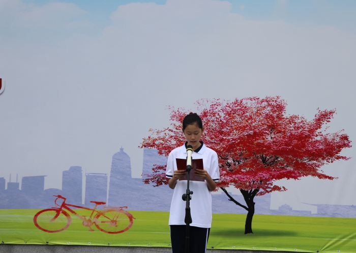 首先,主持人宣布典礼开始,并隆重的向刚入学的新生介绍了学校的各位领导以及七年级的班主任。活动第二项,学校对上学期代表学校参与州、市各项活动和在校内各种竞赛中获奖的学生和班级予以表彰并合影留念。随后新生代表、新任班主任代表和在校生代表纷纷发言,表达了对新学期的希望和愿景。活动第三项,七年级新生以班级为单位进行军训汇报表演。学生们身着统一的服装,迈着矫健的步伐,喊着响亮的口号,身姿挺拔队列整齐,圆满的完成了此次队列表演,充分地展示了七年级新生的精神面貌。