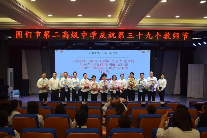 三十余载风雨,三尺讲台,粉笔写春秋,耕耘不辍;无数个朝朝暮暮,一腔热血,杏坛育栋梁,奉献无悔。为深入贯彻习近平总书记关于立德树人的重要精神指示,以及省州市教育主管部门的要求,图们市第二高级中学党支部、工会和科研室于9月7日9时10分联合开展“躬耕教坛 强国有我”主题活动,全体教师欢聚一堂共庆第39届教师节。