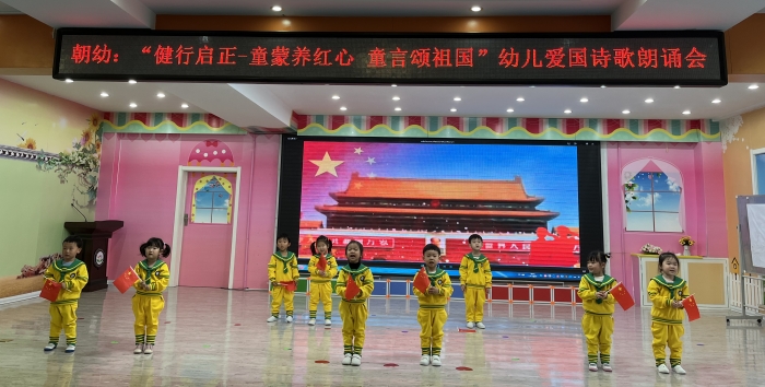 为弘扬红色文化、抒发爱国精神,从小培养幼儿的爱国主义情怀,激发幼儿的民族自信心、自尊心和自豪感,深化幼儿园“红色教育”,图们市朝鲜族幼儿园于11月17日开展“童蒙养红心 童言颂祖国”幼儿爱国诗歌朗诵会活动。