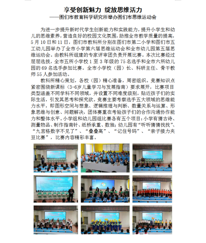 享受创新魅力 绽放思维活力 ——图们市教育科学研究所举办图们市思维运动会