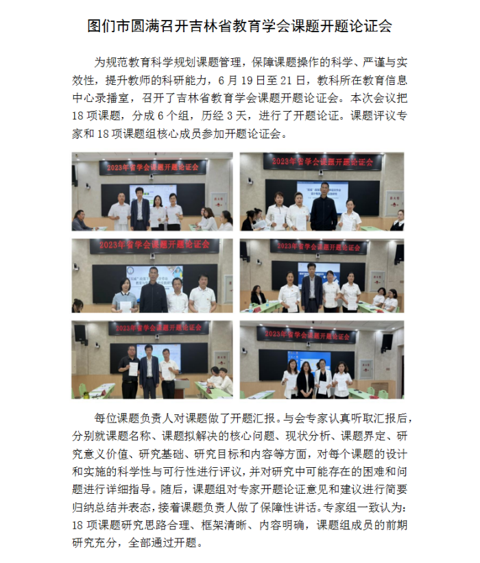 图们市圆满召开吉林省教育学会课题开题论证会