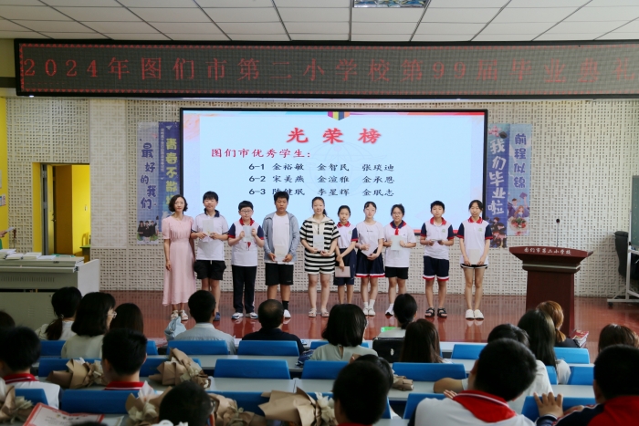 在这激情燃烧的七月,图们市第二小学校举行了第99届毕业典礼,全体领导、六年级师生相聚一堂,为即将踏上新征程的学子们送上最真挚的祝福,为他们的小学生活画上一个圆满的句号。