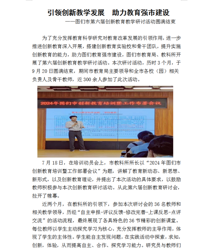 引领创新教学发展 助力教育强市建设——图们市第六届创新教育教学研讨活动圆满结束