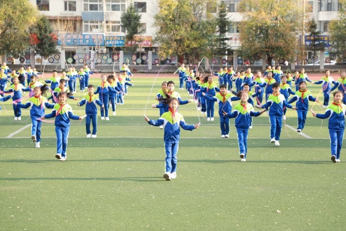 活动中,低年级同学进行了啦啦操展示。他们手持花球,随着欢快的音乐节奏跳跃、旋转、挥手,每一个动作都透露出他们的天真烂漫和对运动的热爱。中年级同学进行了跳绳展示。他们手持彩色跳绳,双脚轻快地跳跃,将花样跳绳技法展现得淋漓尽致。每一次跃起都展现了他们的灵活与协调、阳光与自信。高年级同学进行了排球操展示。伴随着轻松、悦耳的节奏,同学们踏步、持球、垫球……动作规范有力,娴熟到位,无不向我们展示着排球操的力与美。随后,各班级进入自由活动环节,每名学生都沉浸于科学的锻炼之中,并能做到“活中有序、动而不乱”。