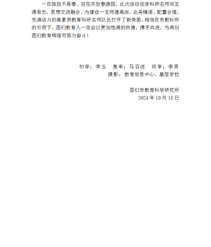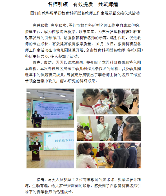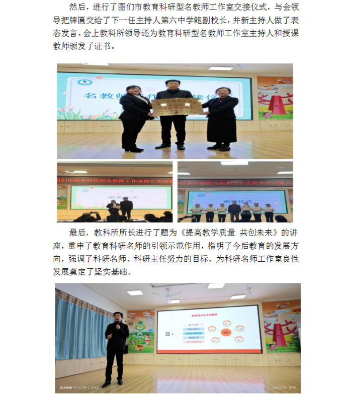 名师引领 有效提质 共筑辉煌——图们市教科所举行教育科研型名教师工作室展示暨交接仪式活动