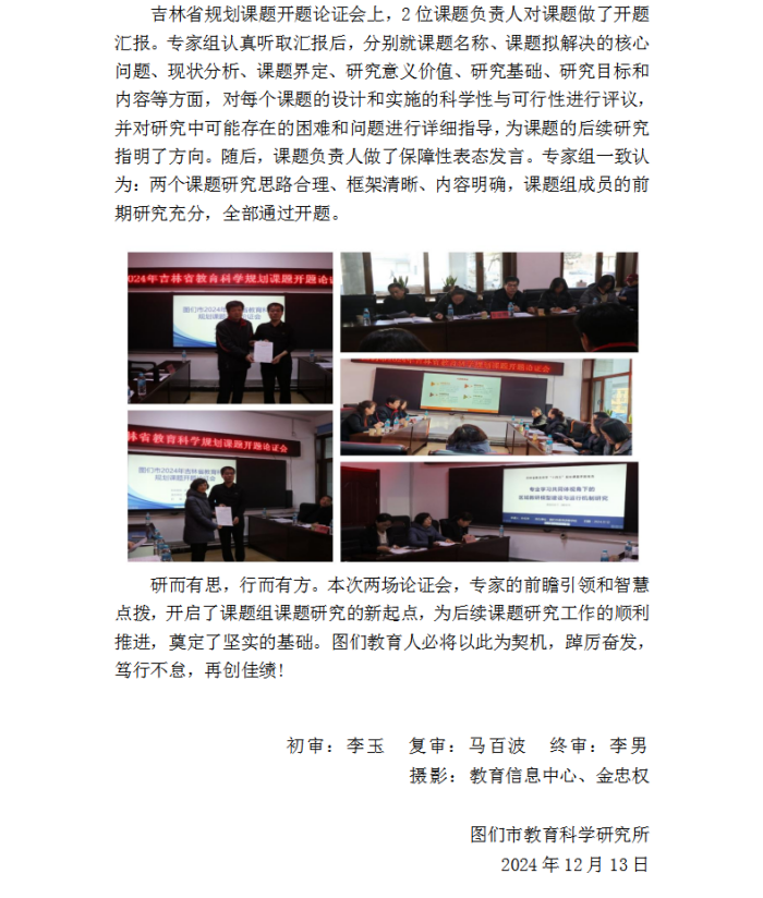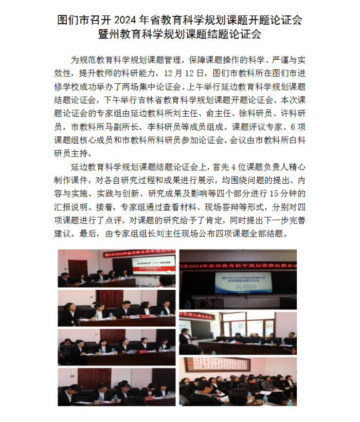 图们市召开2024年省教育科学规划课题开题论证会暨州教育科学规划课题结题论证会