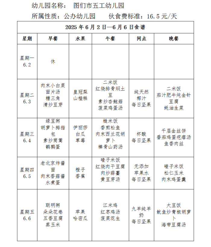 图们市五工幼儿园食谱(2025年6月)