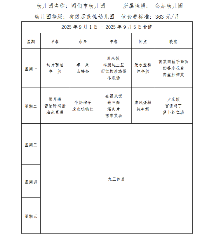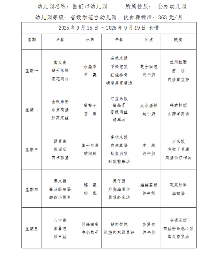 上一篇:图们市五工幼儿园食谱(2025年9月)