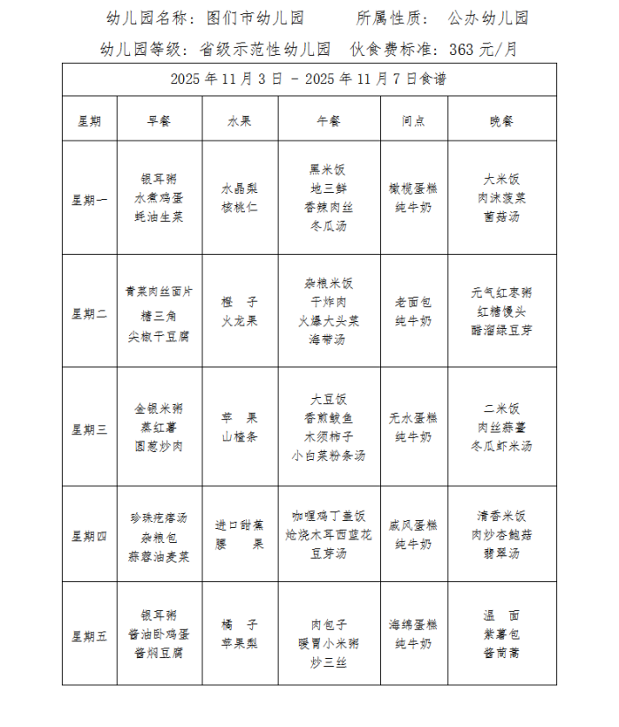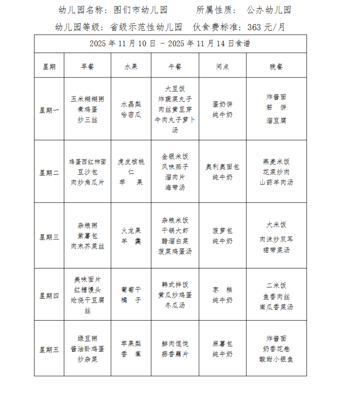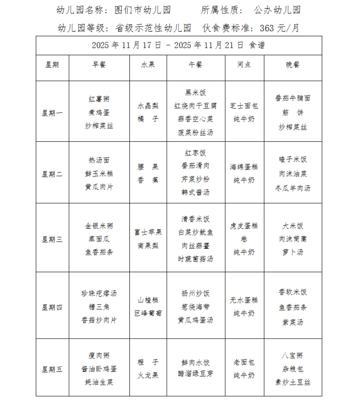 上一篇:图们市五工幼儿园食谱(2025年11月)