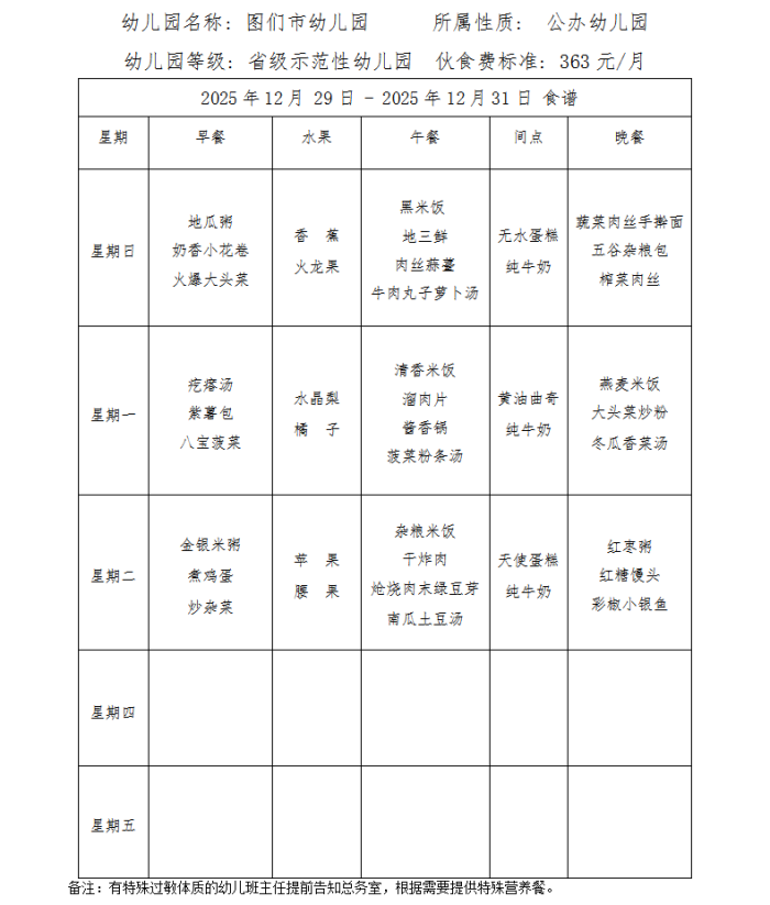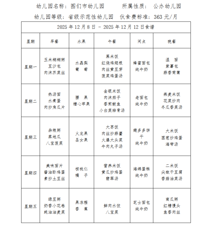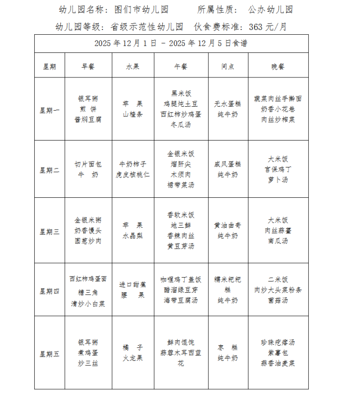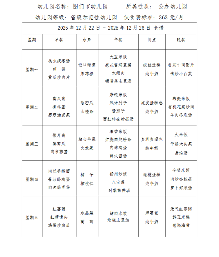 图们市幼儿园食谱(2025年12月)