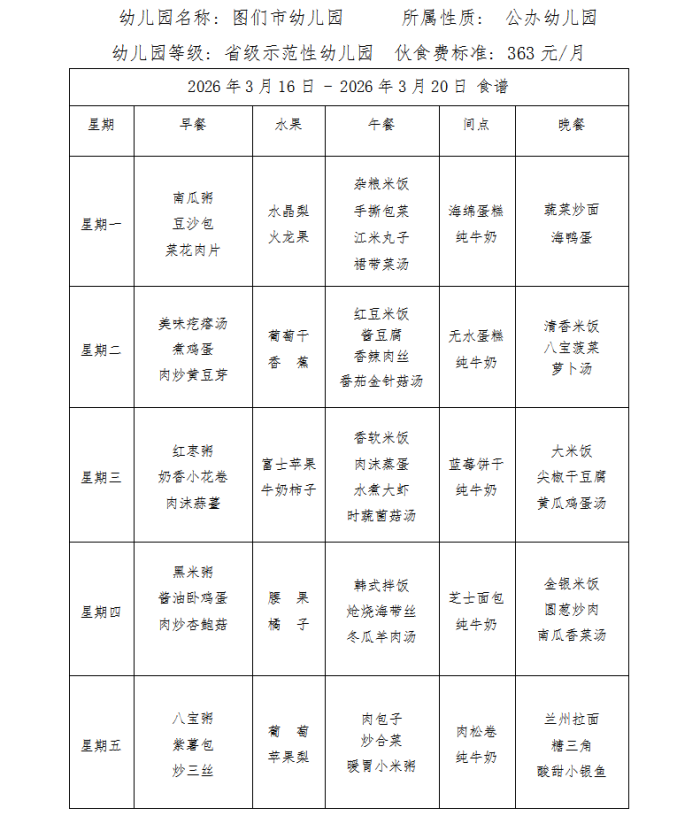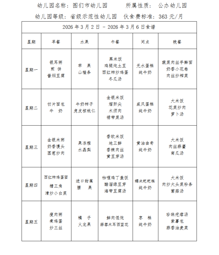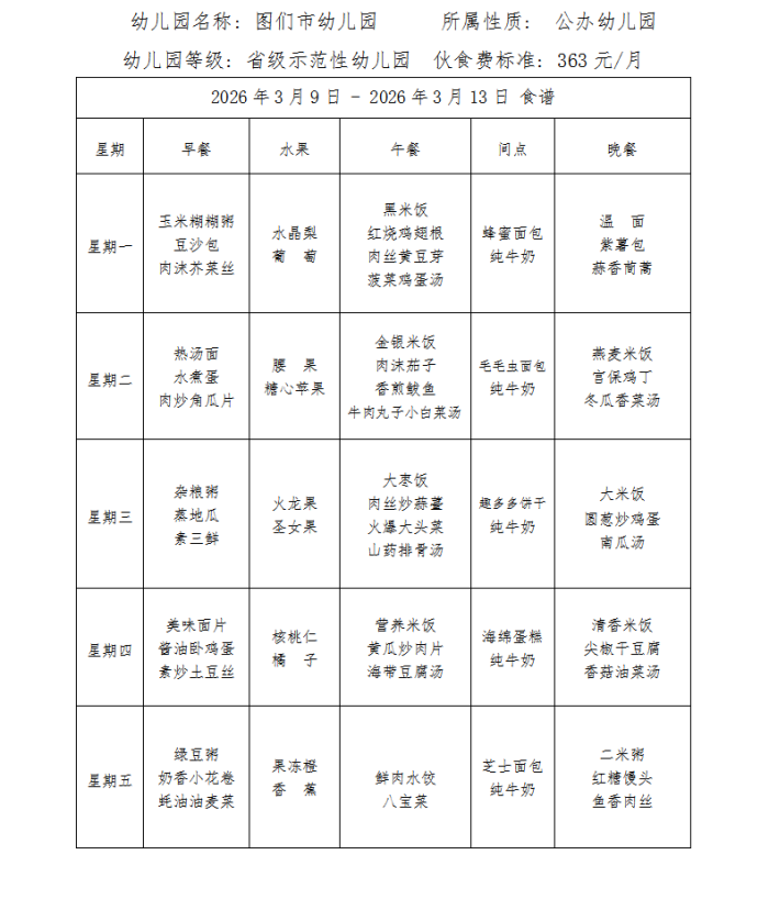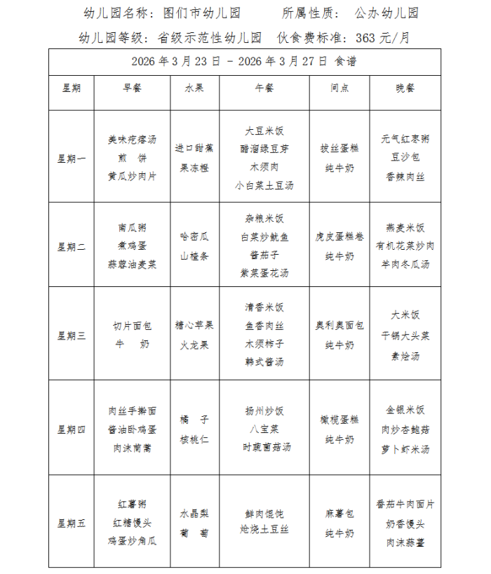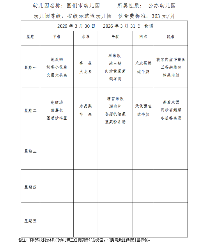 图们市幼儿园食谱(2026年3月)